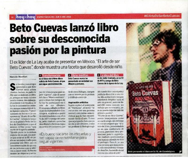 Beto Cuevas edita biografía que muestra su pasión por el dibujo y la pintura [artículo] Marcelo Macellari.