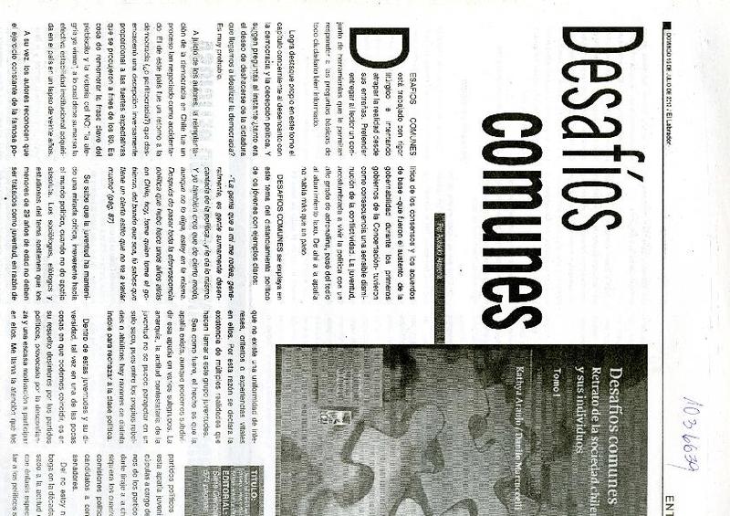 Autoras chilenas - Araujo, Kathya - Desafíos comunes. Retrato de la sociedad chilena y sus individuos
