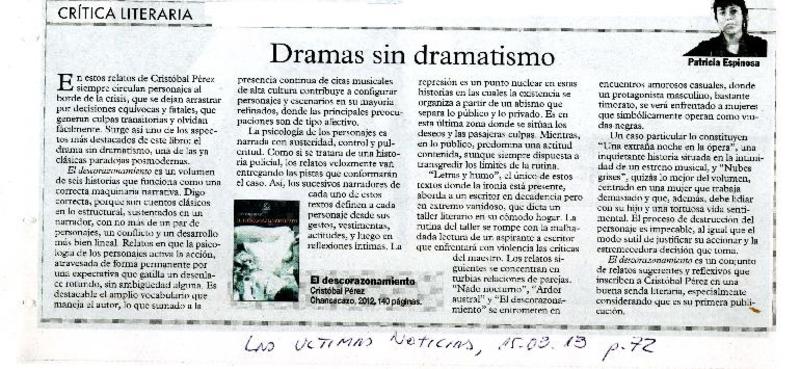 Dramas sin dramatismo [artículo] Patricia Espinosa.