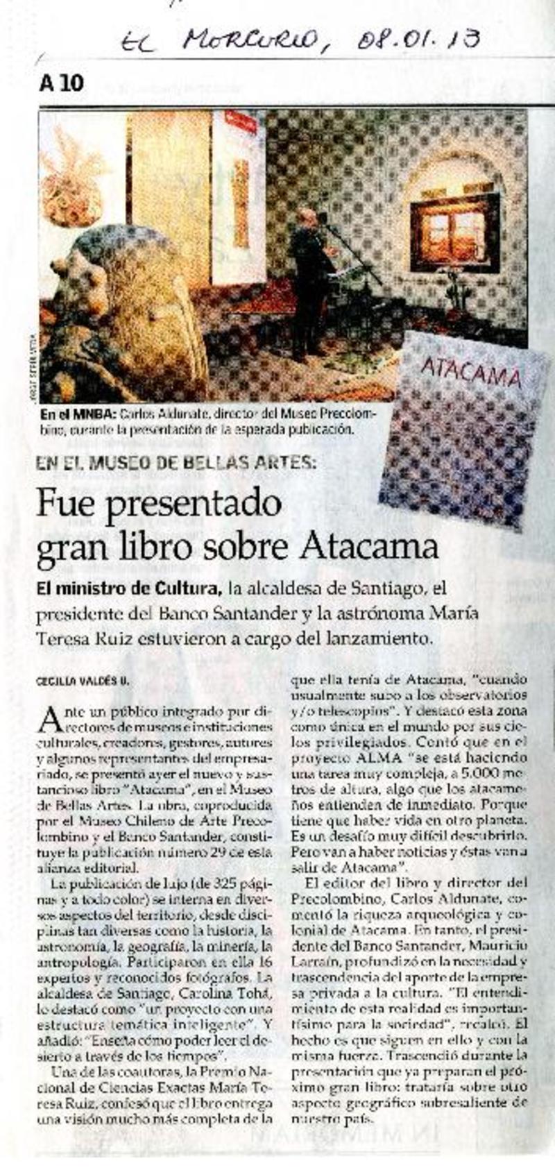 Fue presentado gran libro sobre Atacama [artículo] Cecilia Valdés U.