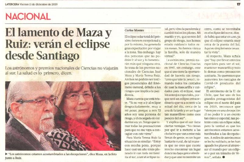 El lamento de Maza y Ruiz : verán el eclipse desde Santiago [artículo] Carlos Montes.