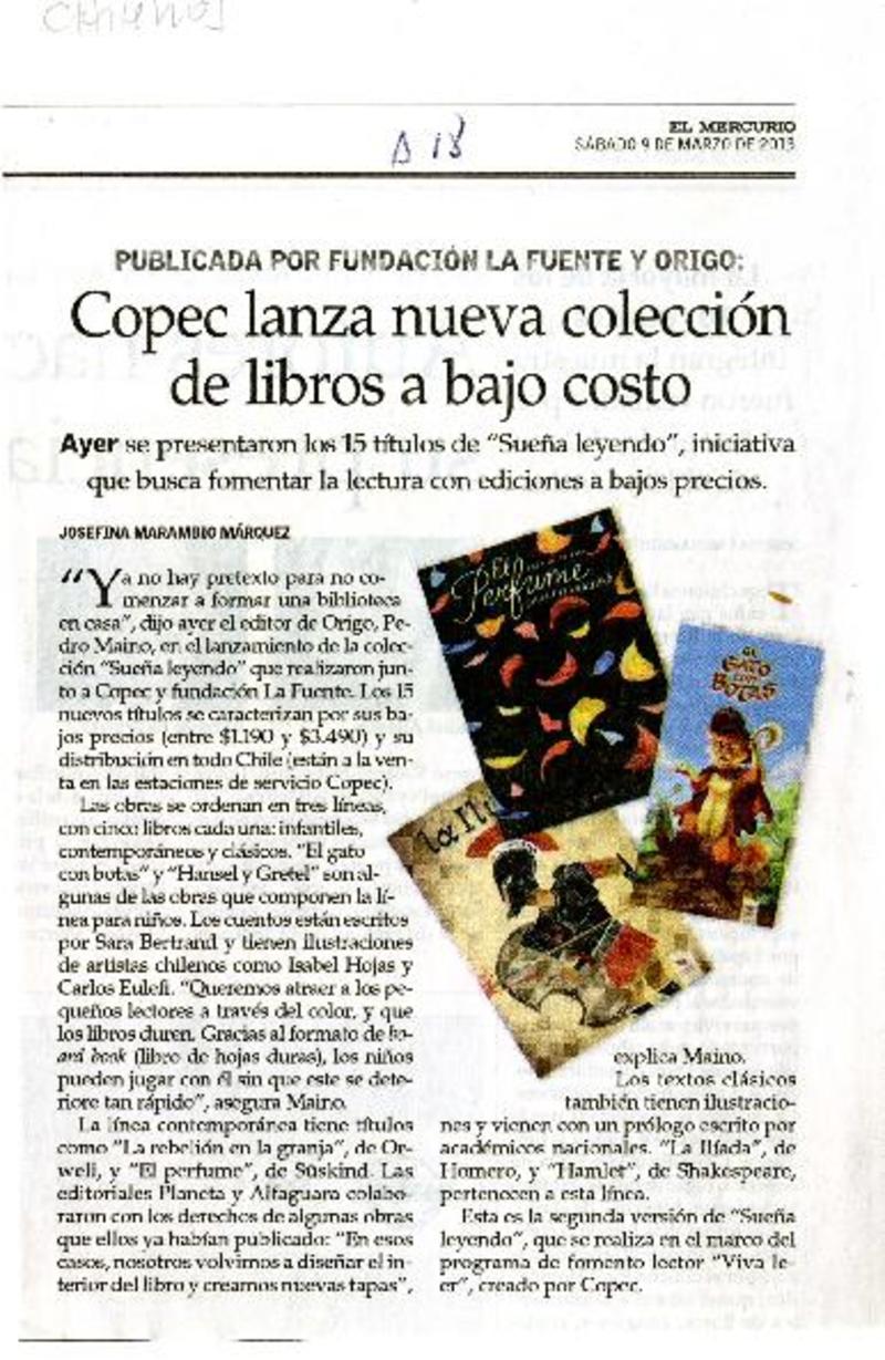 Copec lanza nueva colección de libros a bajo costo [artículo] Josefina Marambio Márquez.