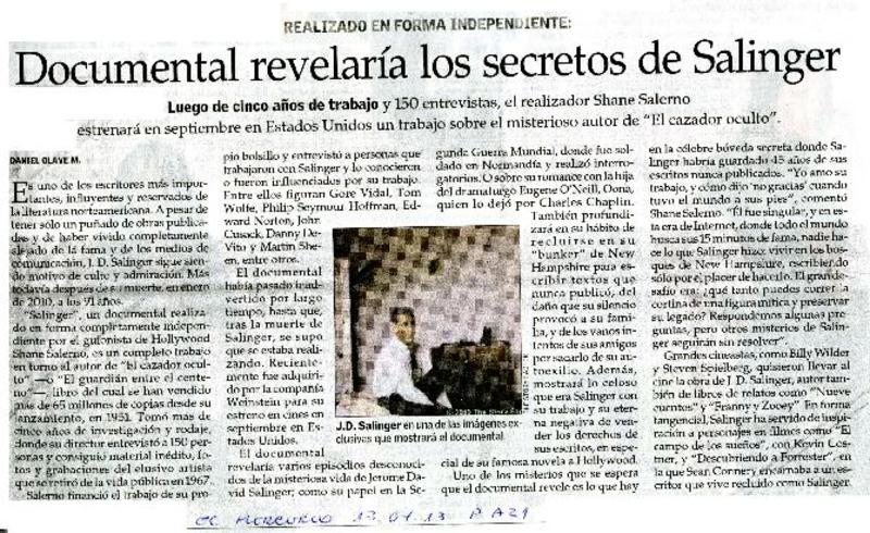 Documental revelaría los secretos de Salinger [artículo] Daniel Olave M.
