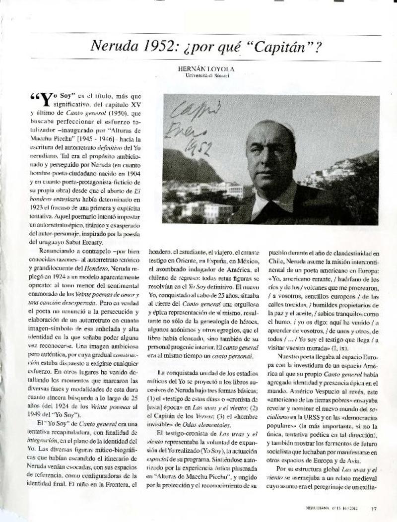 Neruda 1952: ¿por qué "Capitán"? [artículo] Hernán Loyola