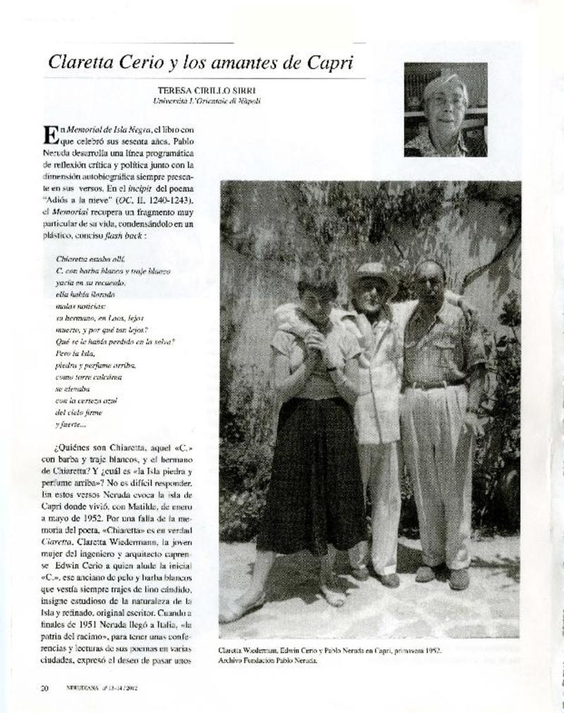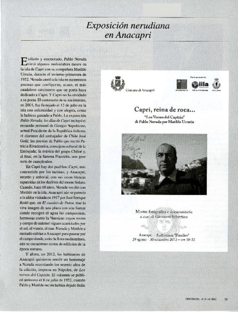Exposición nerudiana en Anacapri [artículo] Teresa Cirillo Sirri