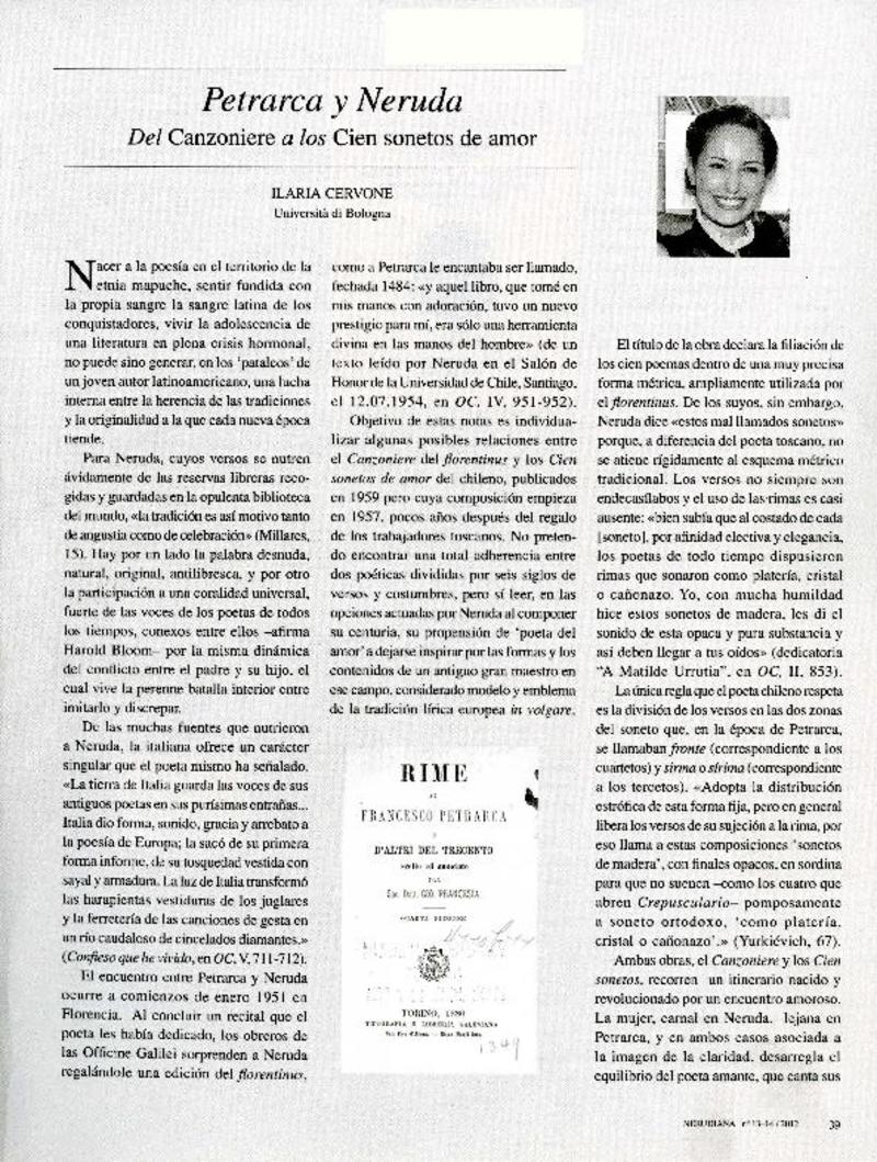 Petrarca y Neruda [artículo] Ilaria Cervone