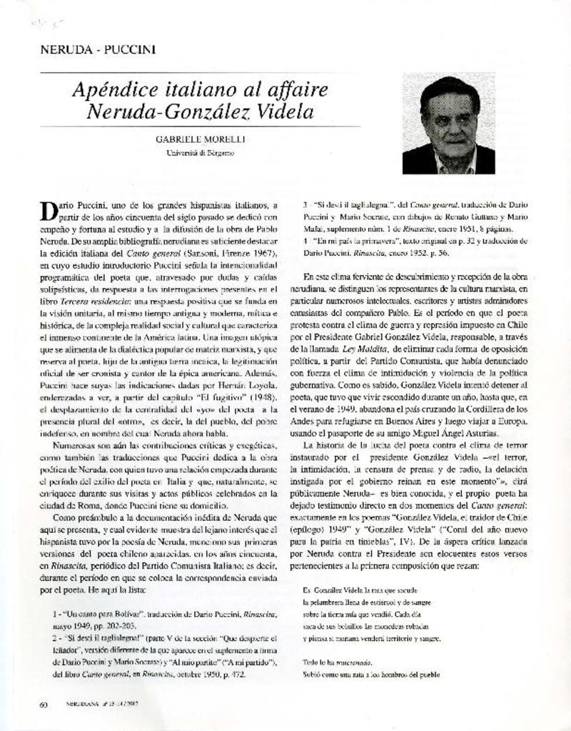 Apéndice italiano al affaire Neruda-González Videla [artículo] Gabriele Morelli