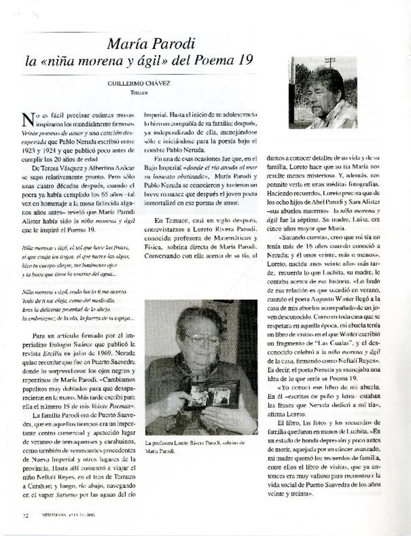 María Parodi la "niña morena y ágil" del Poema 19 [artículo] Guillermo Chávez