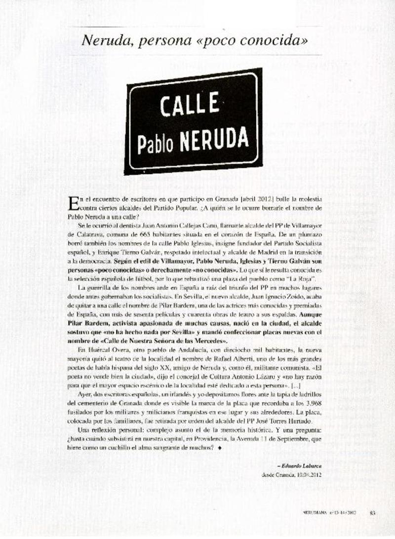 Neruda, persona "poco conocida" [artículo] Eduardo Labarca