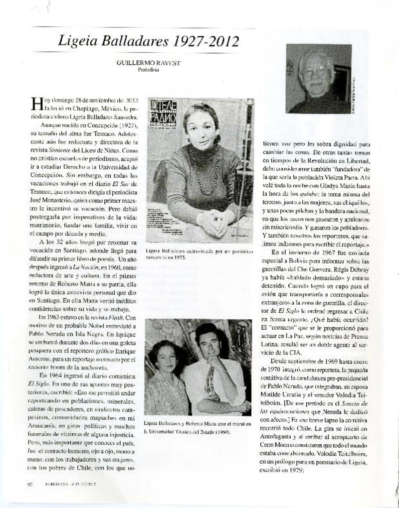 Ligeia Balladares 1927-2012 [artículo] Guillermo Ravest