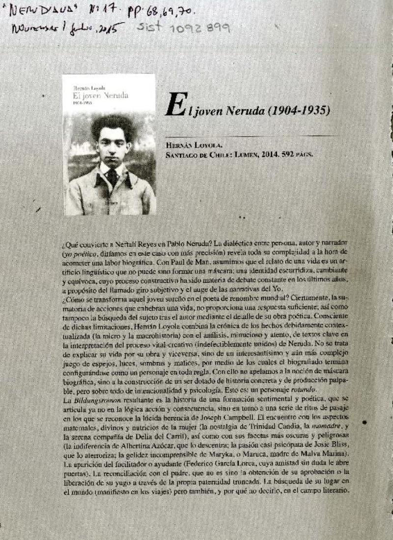 El joven Neruda (1904-1935) [artículo] Patricia Poblete Alday.