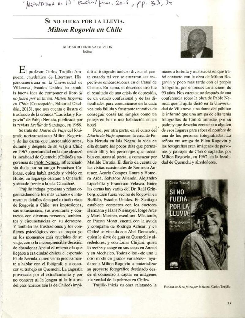 Si no fuera por la lluvia. Milton Rogovin en Chile [artículo] Medardo Urbina Burgos.
