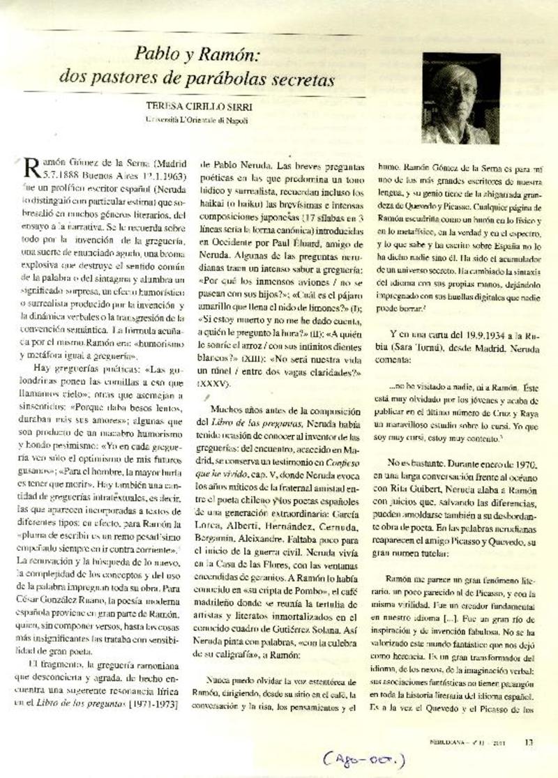 Pablo y Ramón: dos pastores de parábolas secretas [artículo] Teresa Cirillo Sirri.
