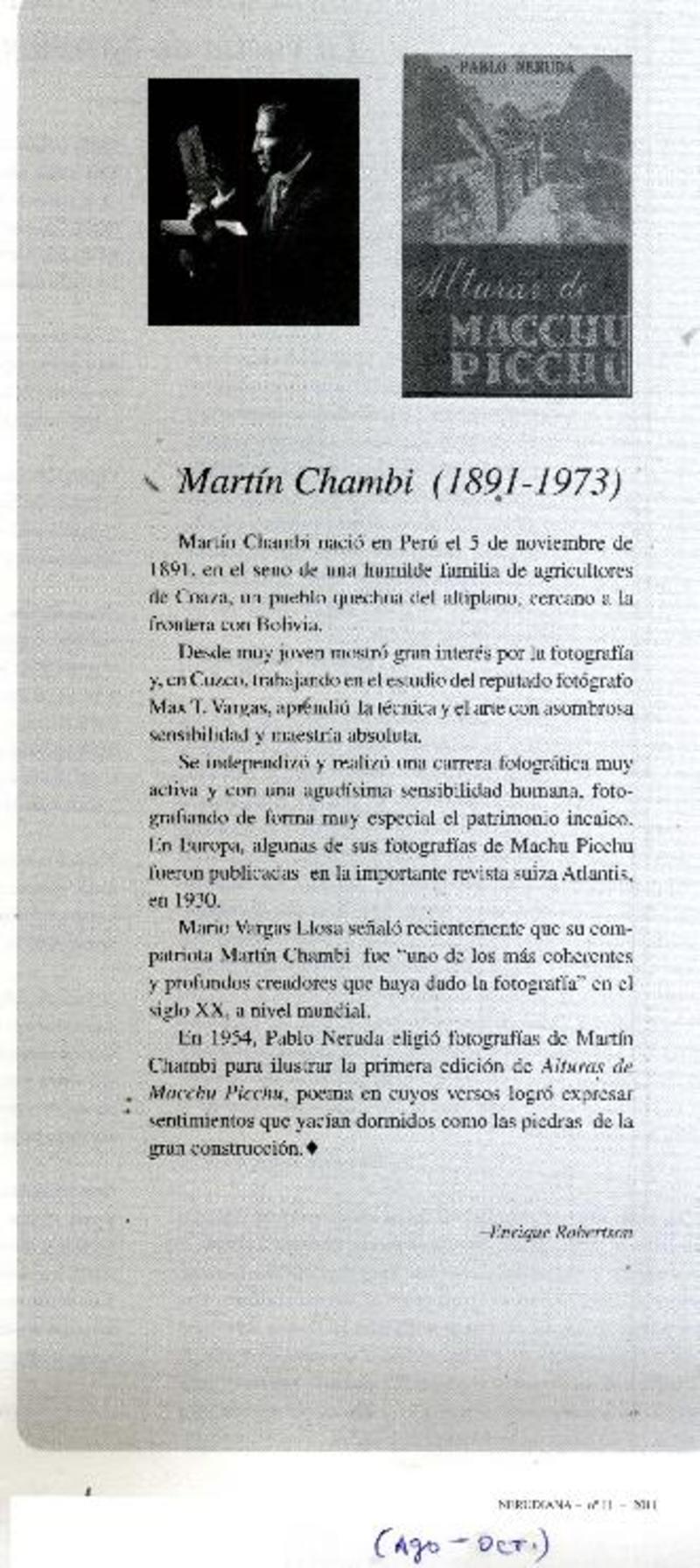 Martín Chambi (1891-1973) [artículo] Enrique Robertson.