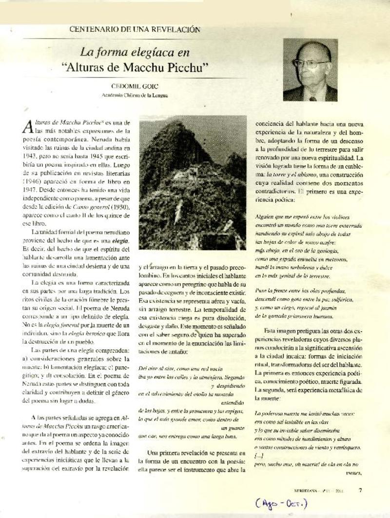 La forma elegíaca en "Alturas de Macchu Picchu" [artículo] Cedomil Goic.