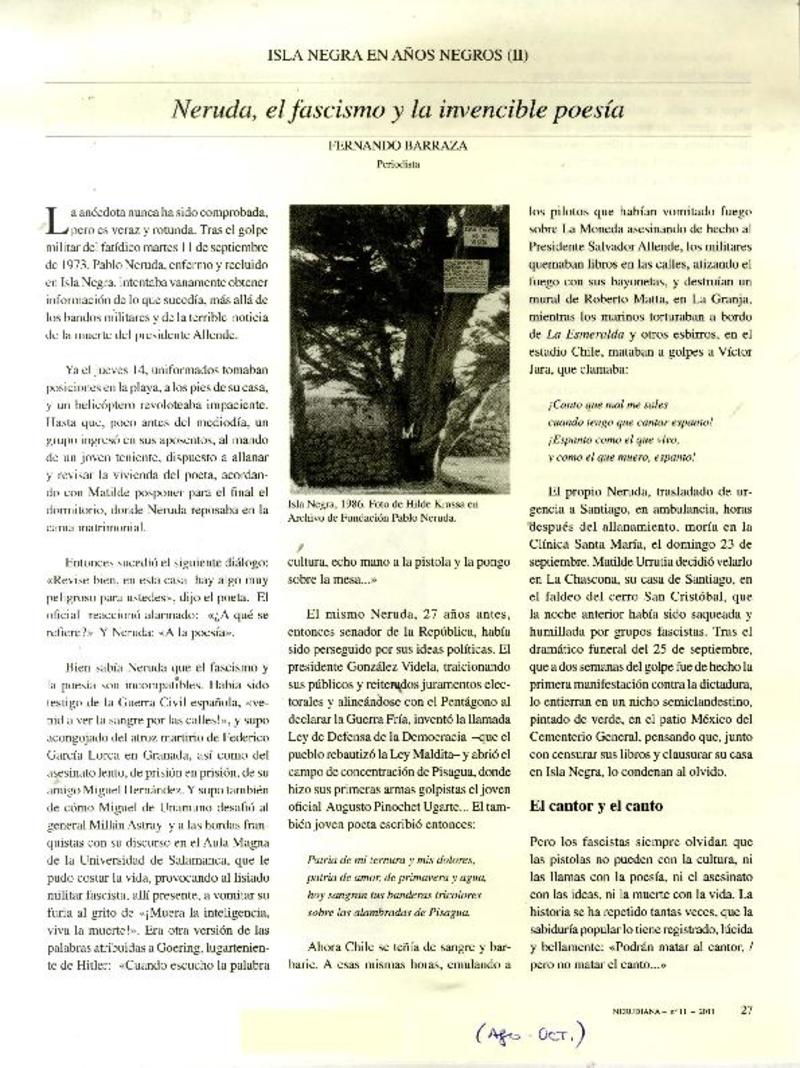 Neruda, el fascismo y la invencible poesía [artículo] Fernando Barraza.