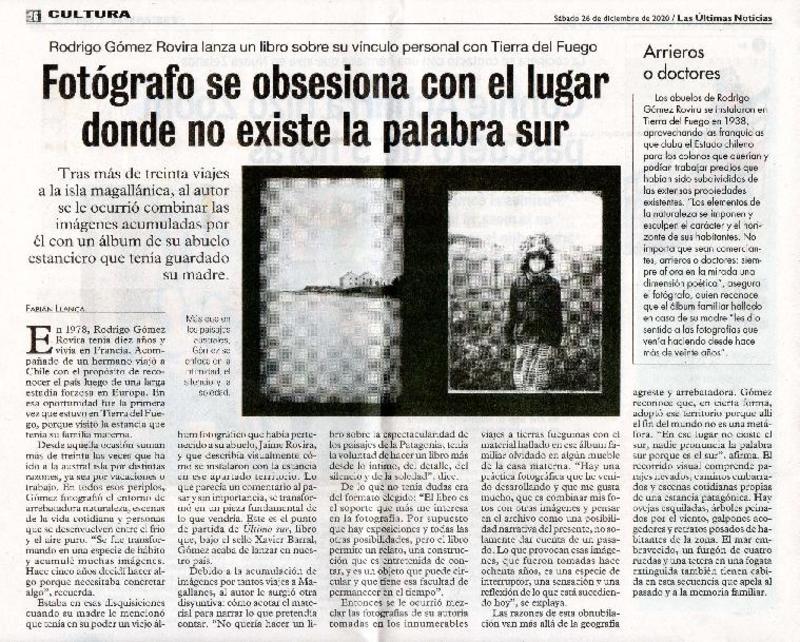 Fotógrafo se obsesiona con el lugar donde no existe la palabra sur [artículo] Fabián Llanca.