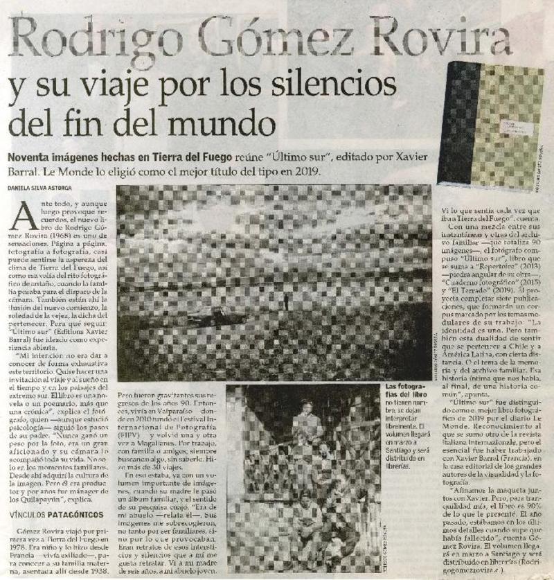 Rodrigo Gómez Rovira y su viaje por los silencios del fin del mundo [artículo] Daniela Silva Astorga.