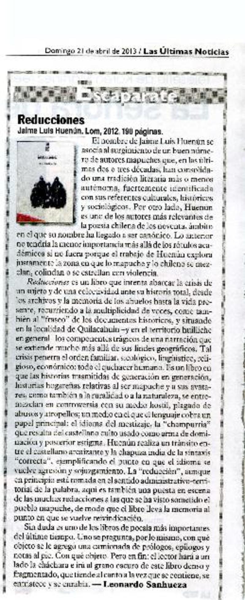 Huenún Villa, Jaime Luis - Reducciones - Autores mapuches