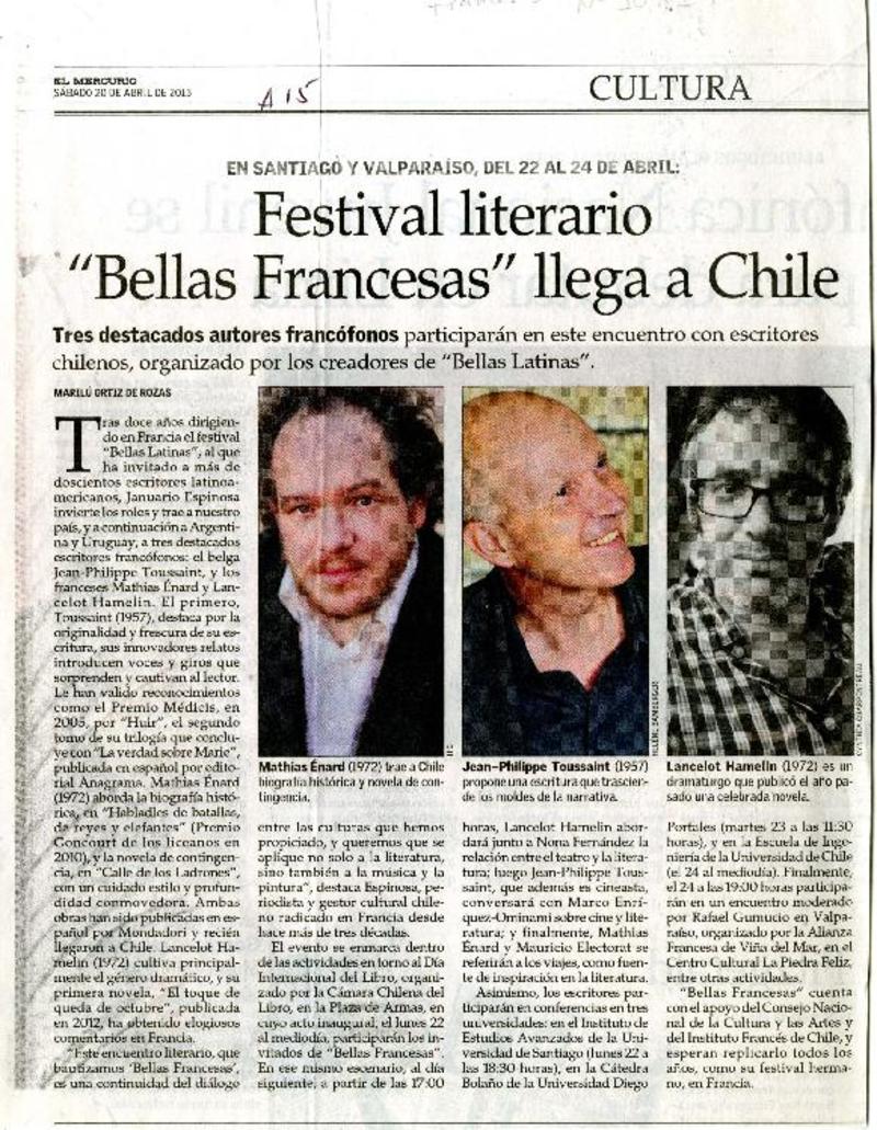 Festival literario "Bellas francesas" llega a Chile [artículo] Marilú Ortiz de Rozas.