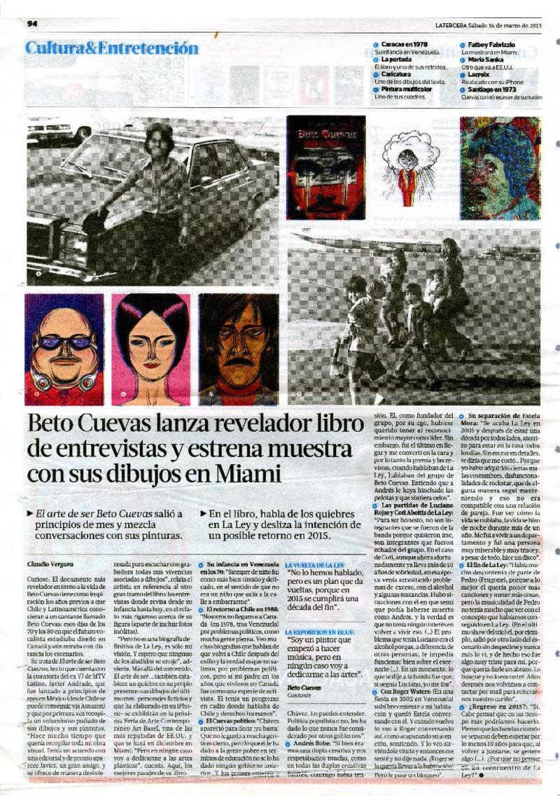 Beto Cuevas lanza revelador libro de entrevistas y estrena muestra con sus dibujos en Miami [artículo] Claudio Vergara.