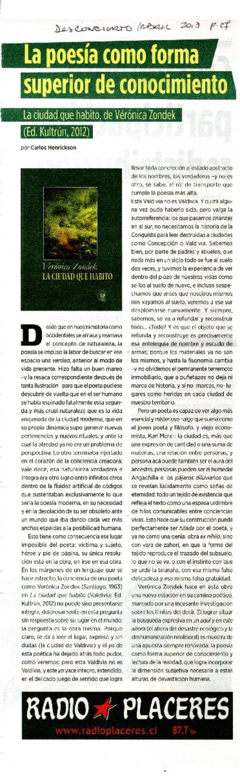 La poesía como forma superior de conocimiento [artículo] Carlos Henrickson.