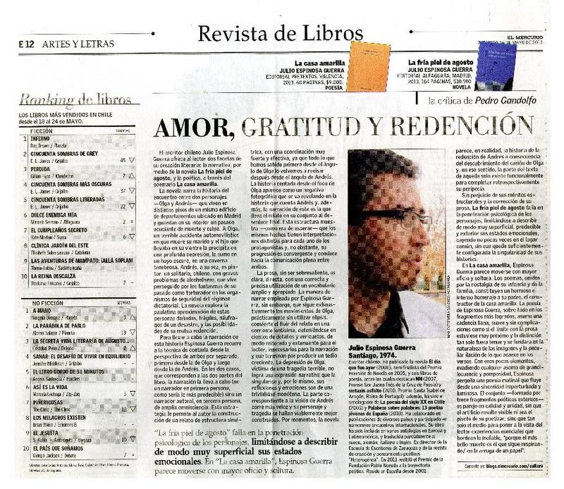 Autores chilenos - Fría piel de agosto - Casa amarilla - Espinosa, Julio