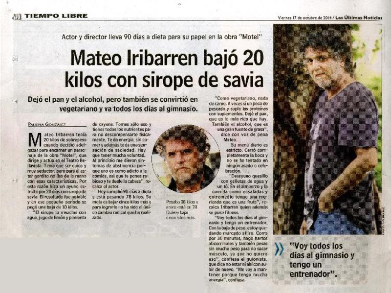 Mateo Iribarren bajó 20 kilos con sirope de savia [artículo] Paulina González