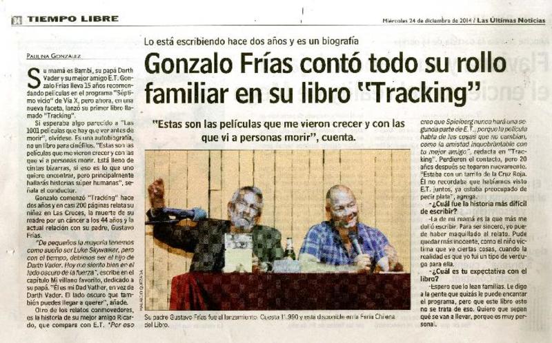 Gonzalo Frías contó todo su rollo familiar en su libro "Tracking" [artículo] Paulina González