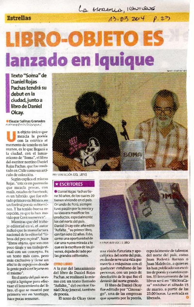 Libro-objeto es lanzado en Iquique [artículo] Eleazar Salinas Granados