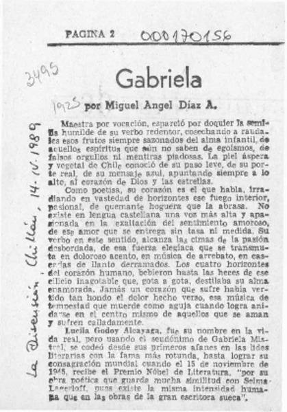 Gabriela [artículo] Miguel Angel Díaz A.