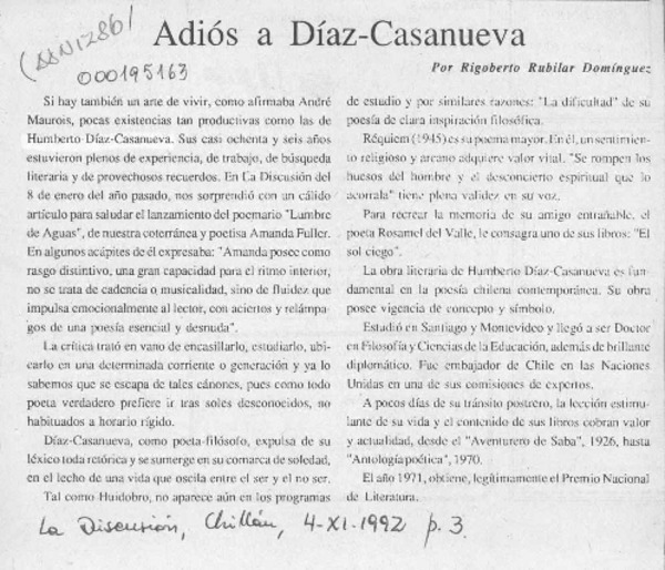 Adiós a Díaz-Casanueva [artículo] Rigoberto Rubilar Domínguez.