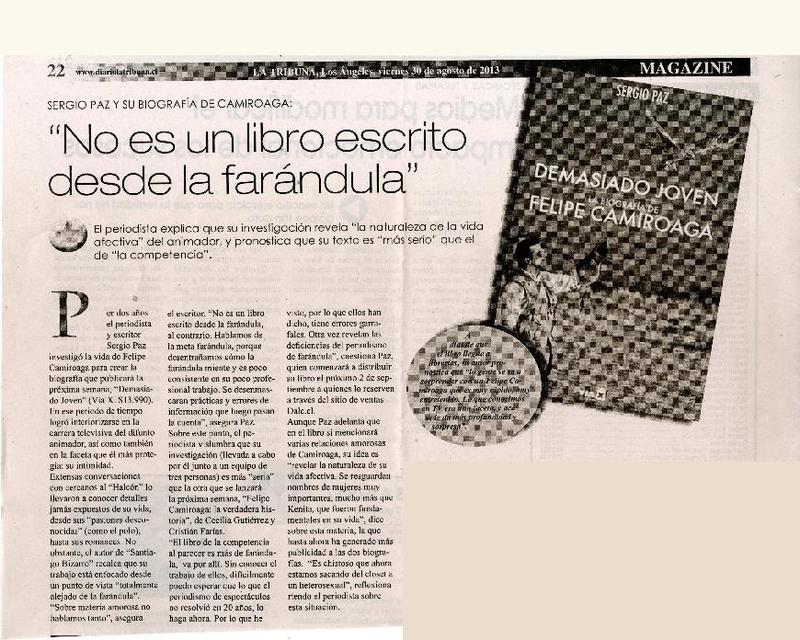 Demasiado joven - Autores chilenos - Farías, Cristián - Felipe Camiroaga, la verdadera historia - Gutiérrez, Cecilia - Paz, Sergio