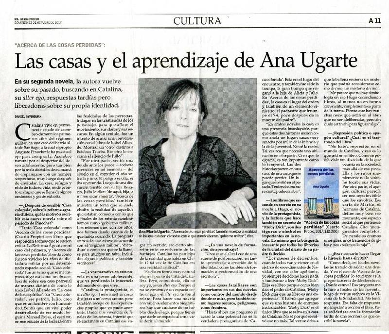 Autoras chilenas - Entrevistas - Ugarte, Ana - Acerca de las cosas perdidas