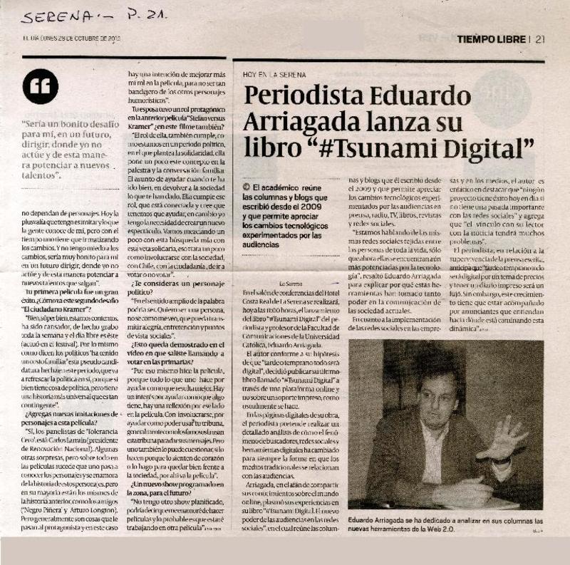Periodista Eduardo Arriagada Lanza su libro "#Tsunami Digital" [artículo]