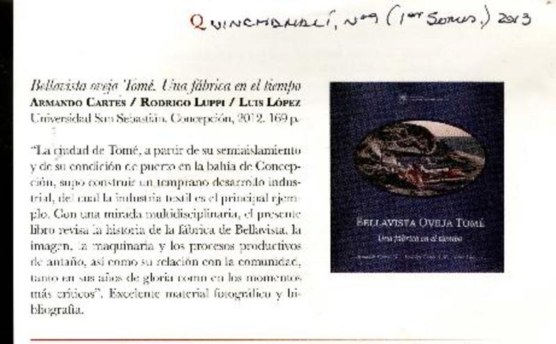 Autores chilenos - Cartes, Armando - Bellavista oveja Tomé. Una fabrica en el tiempo