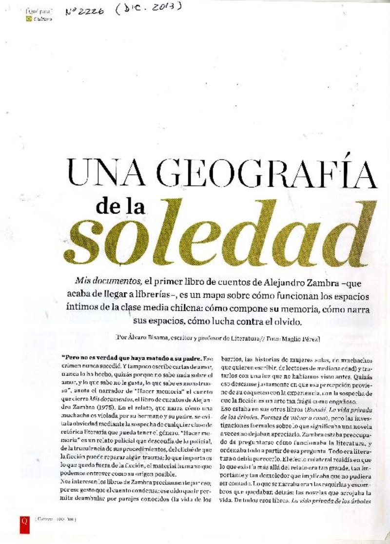 Una geografía de la soledad [artículo] Alvaro Bisama