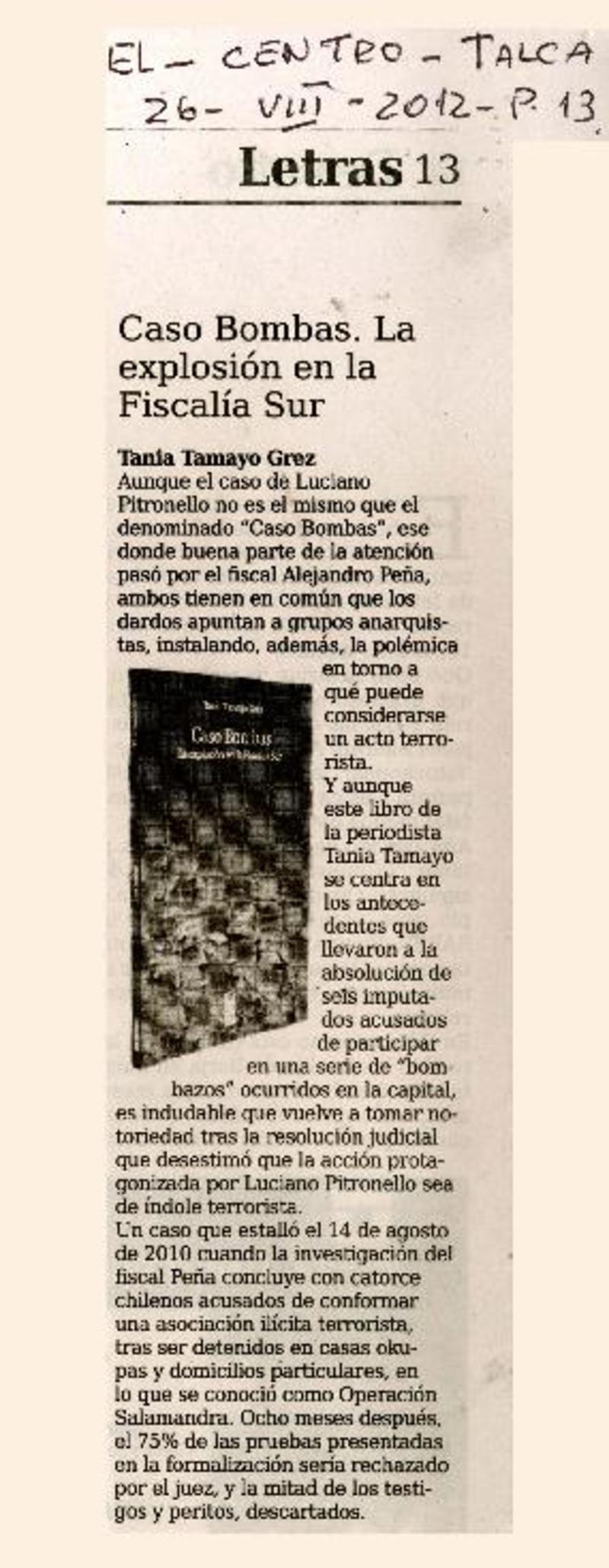 Autores chilenos - Tamayo Grez, Tania - Caso bombas. La explosión en la fiscalía sur