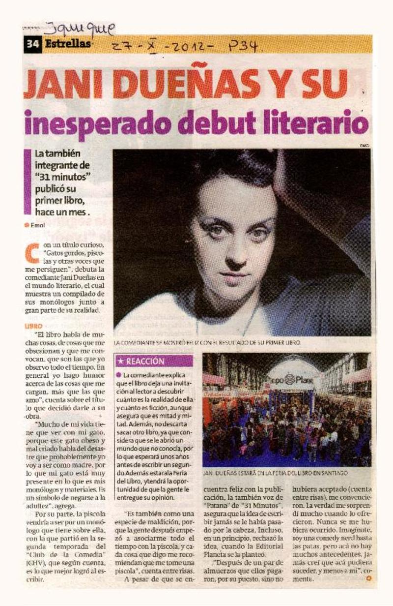 Jani Dueñas y su inesperado debut literario. [artículo]