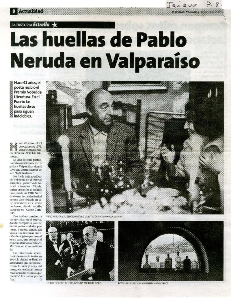Las huellas de Pablo Neruda en Valparaíso. [artículo]