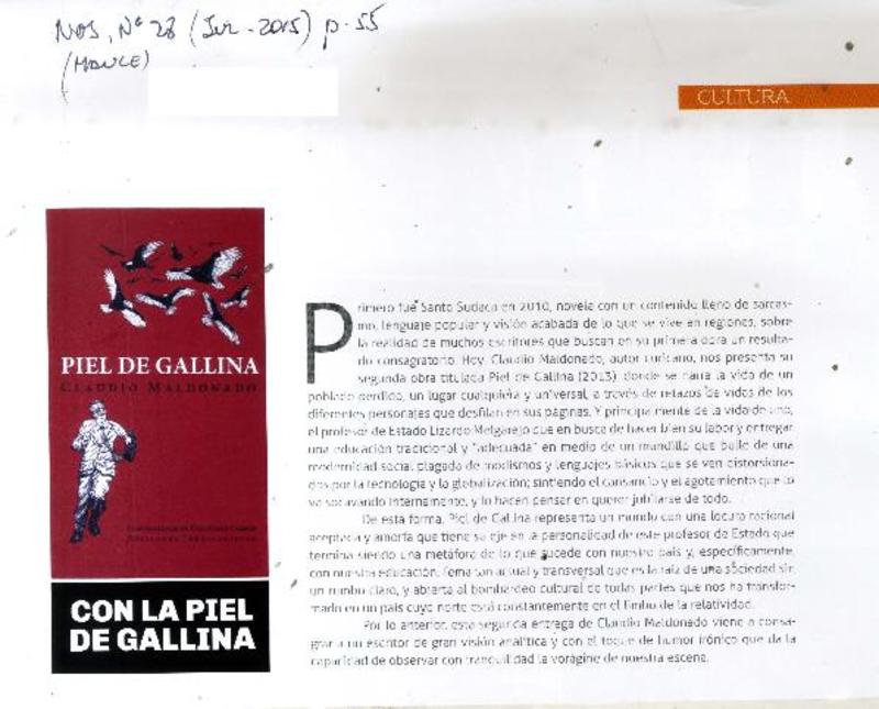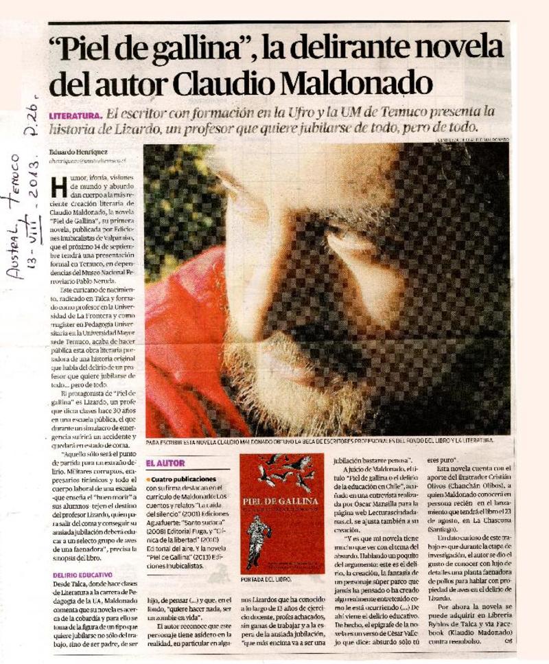 "Piel de Gallina", la delirante novela del autor Claudio Maldonado [artículo] Eduardo Henríquez