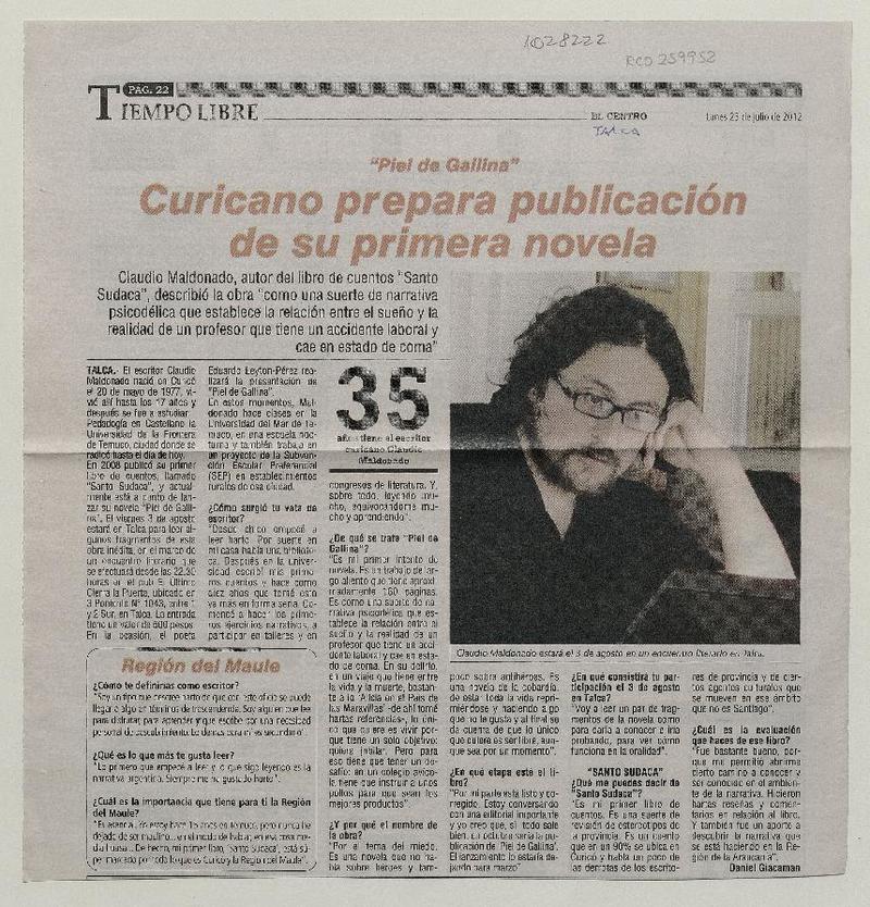Curicano prepara publicación de su primera novela [artículo] Daniel Giacaman.