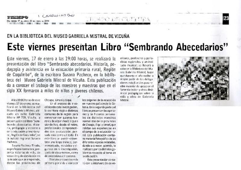 Este viernes presentan libro "sembrando abecedarios" [artículo].