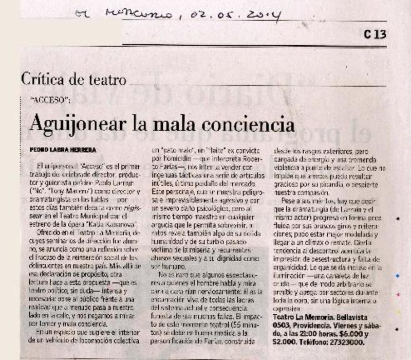 Aguijonear la mala conciencia [artículo] Pedro Labra Herrera.