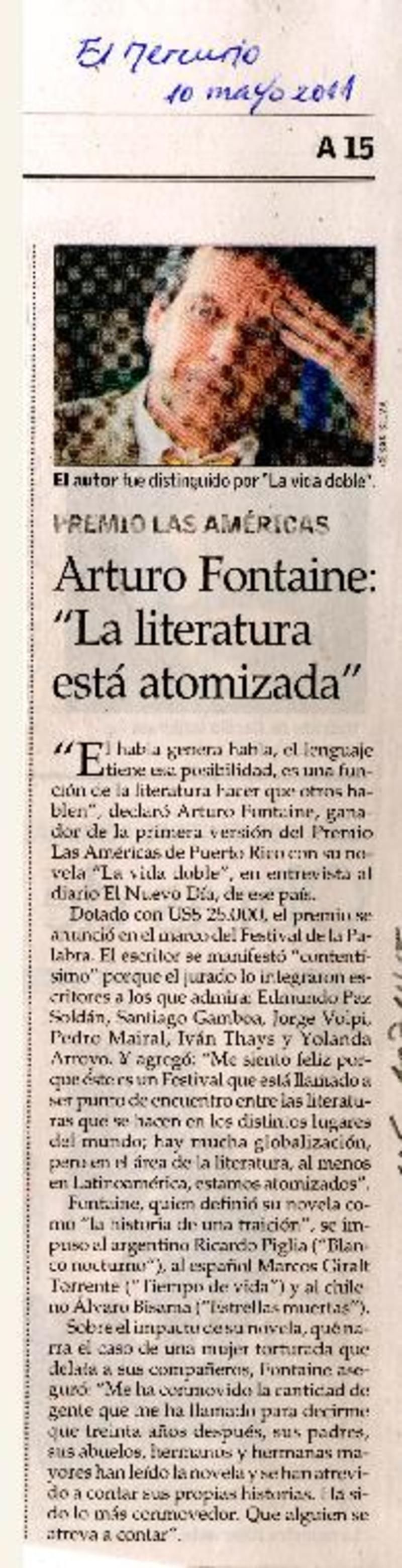 Arturo Fontaine: "la literatura está atomizada". [artículo]