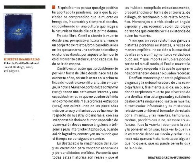 Muertes imaginarias [artículo] Beatriz García Huidobro.