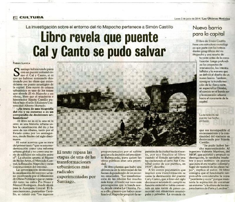 Libro revela que puente Cal y Canto se pudo salvar [artículo] Fabián Llanca