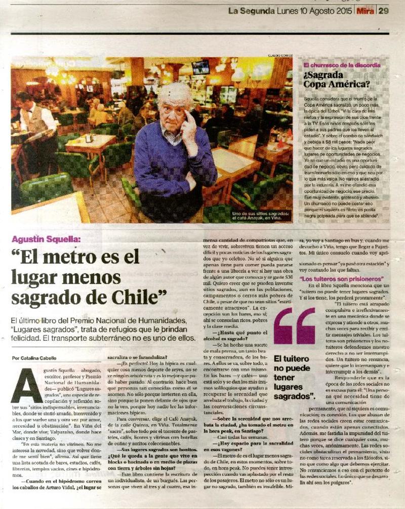 "El metro es el lugar menos sagrado de Chile" [entrevista] [artículo] Catalina Cabello.