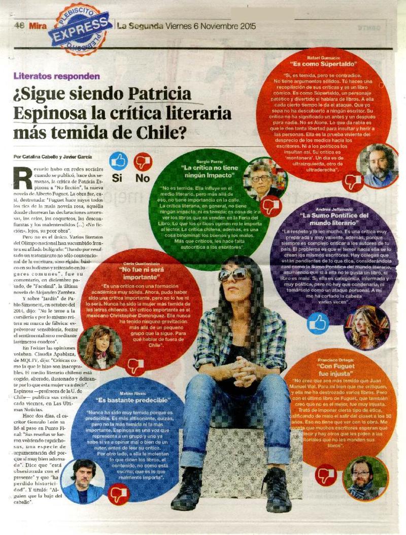 ¿Sigue siendo Patricia Espinosa la crítica literaria más temida de Chile? [artículo] Catalina Cabello y Javier García.