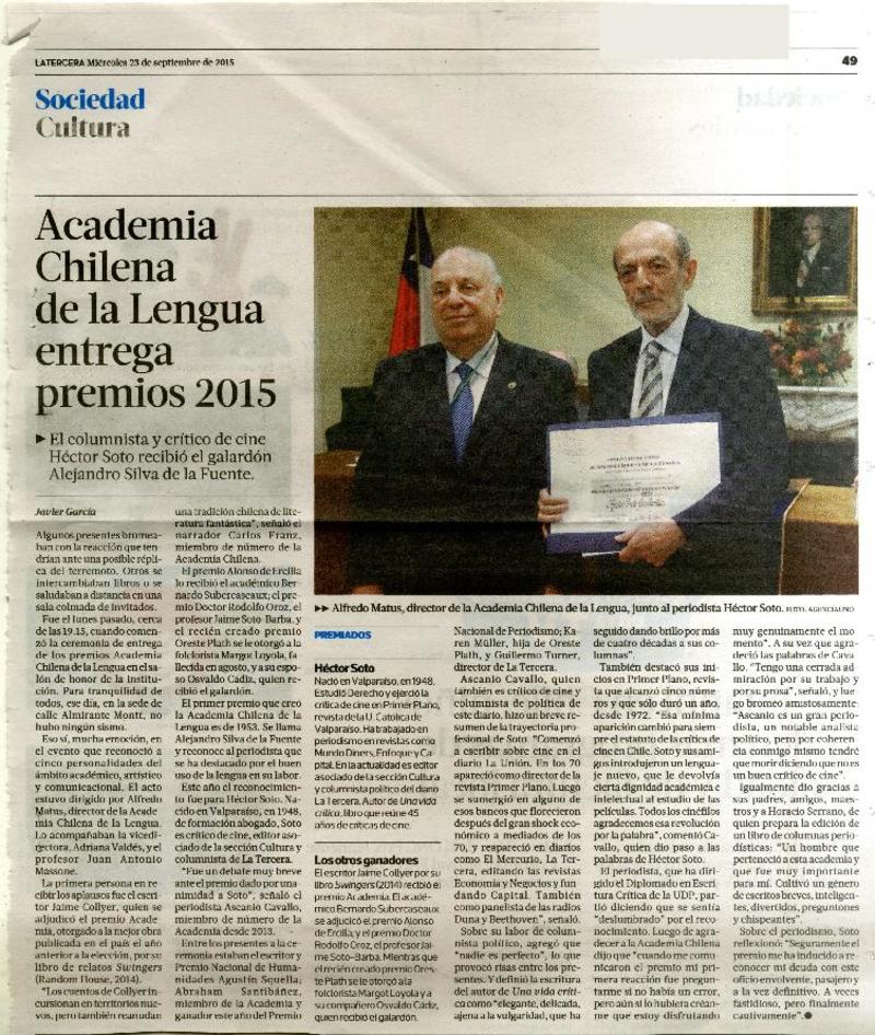 Academia Chilena de la Lengua entrega premios 2015 [artículo] Javier García.